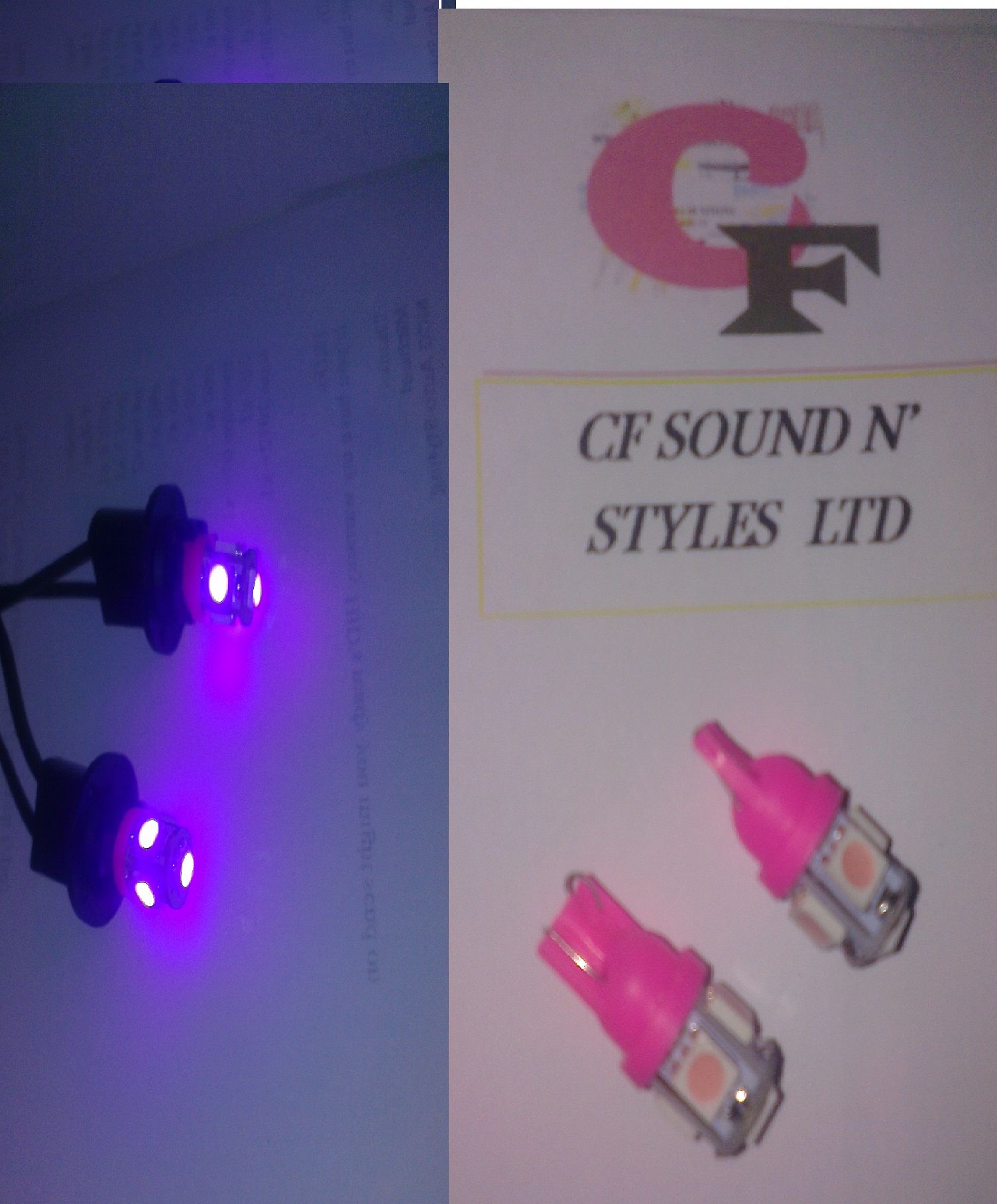 2 x 501 T10 PINK/PURPLE Wedge White SMD Parking Light & No. Plate Bulbs LED