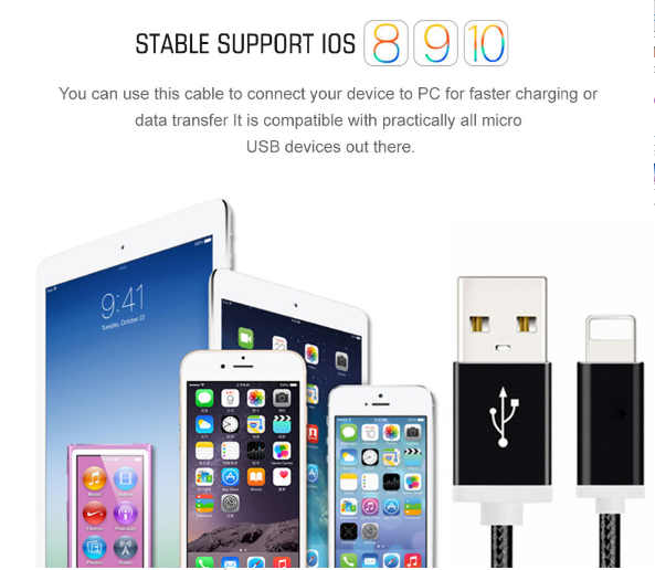 Nylon Braided Charger Charging Sync Data USB Cable For iphone 7 6 6s plus 5s ipad mini ipad