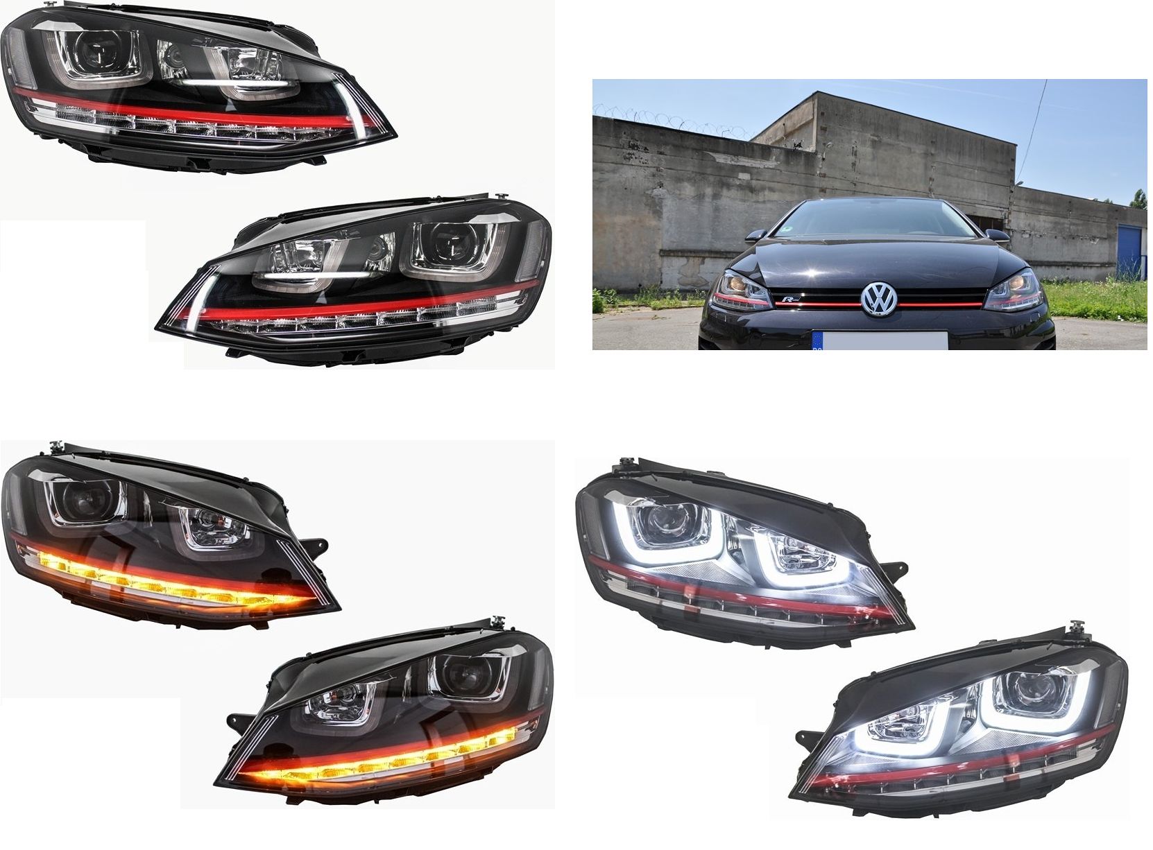 Headlights 3D LED DRL Volkswagen VW Golf 7 VII 2012-2017 RED R20 GTI Look LED Flowing Dynamic Sequential Turning Lights RHD