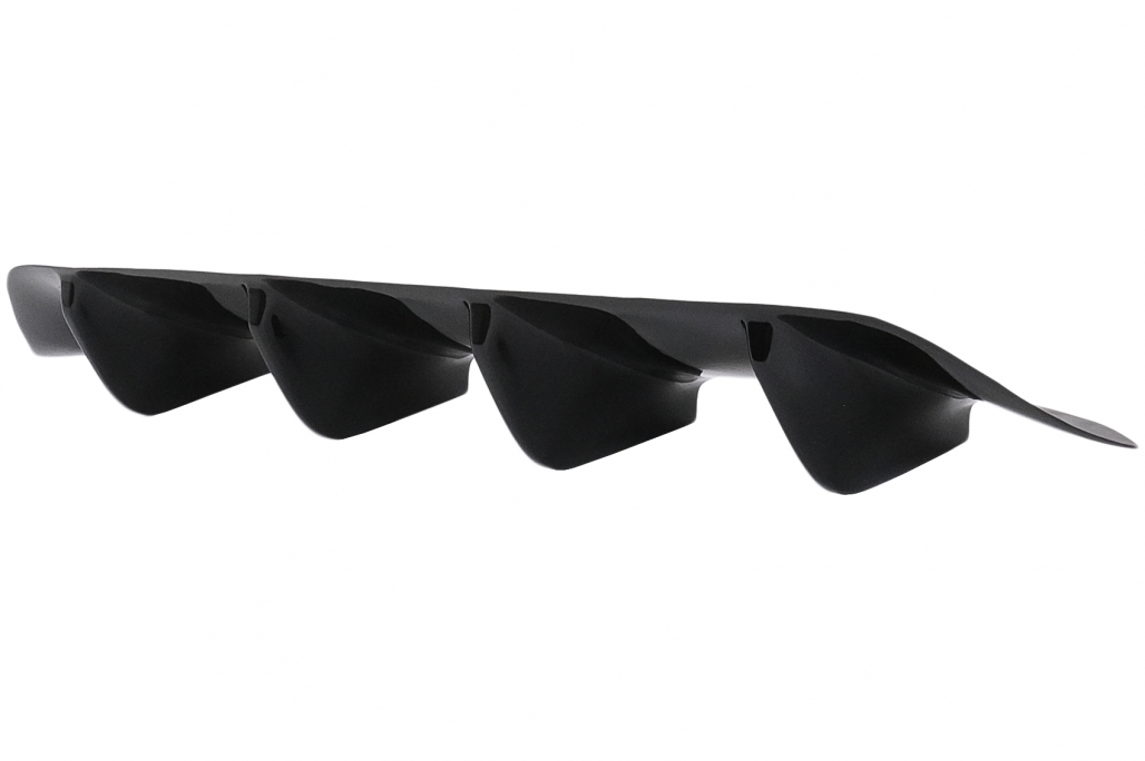 The front lip, rear diffuser extension, and side skirts extensions crafted in high-quality plastic